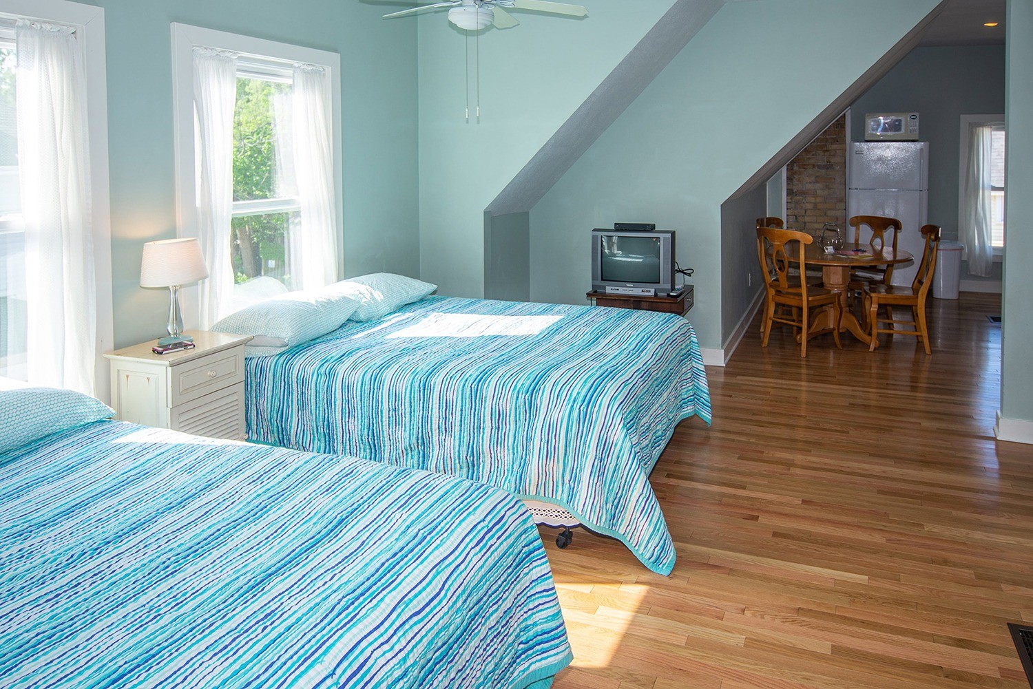 Perfect. Pre-paid, was told what room we would be in, arrived to find our key(self check in). Checked out the next morning, left key. It’s an old mansion that has been converted into a B&B, you can smell the water from Lake Michigan, all the amenities are updated, flat screen, new tile in the bathroom, brand new fridge and microwave.