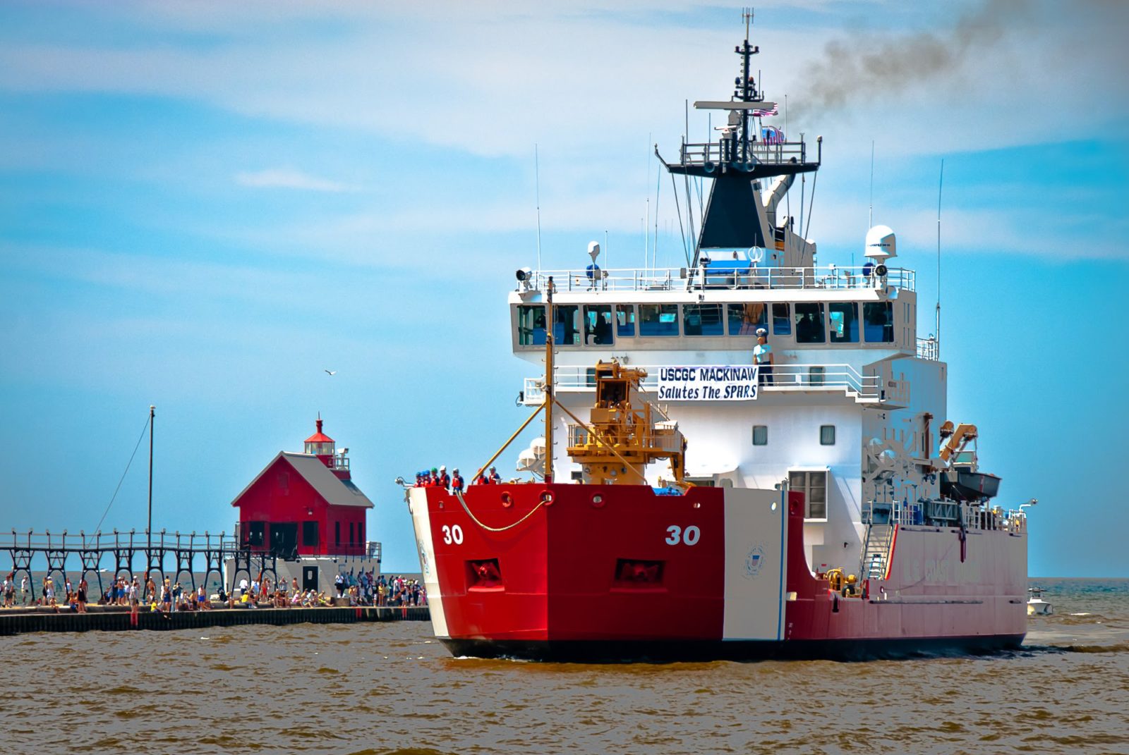 The United States Coast Guard Cutter Mackinaw, a great lakes ice breaker, is one of the many ships to arrive in the port of Grand Haven for the annual Coast Guard Festival. The ships can be viewed in the harbor along the Grand River boardwalk and toured during the festival. The Serendipity Resort salutes the United States Coast Guard and is located six blocks to ships’ berth